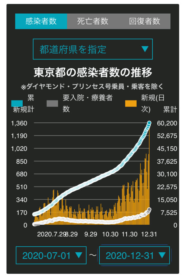 年末年始は、忘年会や新年会で集まる機会も多くなります。 夏のお盆に帰省出来なかった人たちが、年末年始には帰省しようと考えて いる方も多いはずです。 このまま増え続ければ、年明けに緊急事態宣言が再びある可能性も。 2021年は東京オリンピックがあるのでしょうか・・・。 |