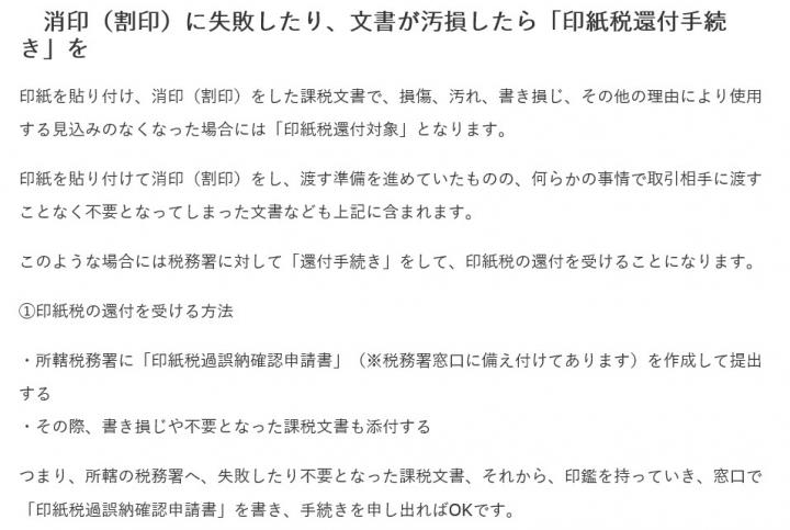 こんばんは。 不動産の仕事をしていると、契約書類や領収証を作成する 機会が多いです。その際、印紙を貼付することも多いのですが 金額や日にち、文章などが変更になることもしばしば・・・。 印紙を無駄にしてしまった!という事態になります。 印紙に割印をしていなければ剥がせば済むのですが、そういう 場合は大概しっかり割印済みです。 200円の印紙でも悔しいですが、売買契約書ですと1万円や3万円 と高額のため、海に向かって叫びたくなるほどです。 郵便局に持って行って、泣いて頼めばどうにかしてくれないかと 思っていました。 ところが、調べてみると郵便局ではなく税務署だそうです。 泣かなくても書類1つで良いそうです。なんと便利な! 私にとって、山に向かって叫びたくなるほど嬉しい情報でした。