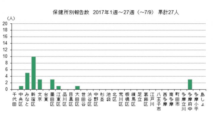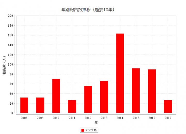 東京でデング熱が大流行したのは3年前の2014年。 なんと1年間で160人以上がデング熱にかかってしまった そうです。 そして、今年2017年の今日現在は、何と27人の方が既に デング熱にかかってしまっているようです。 これはデング熱と診断された方だけの数字で、デング熱と わからなった病院の先生もいるでしょうし、病院に行く ことなく家で市販薬を飲んでいた方もいるでしょう。 実際には、もっと沢山の方がデング熱にかかっていると 思うと怖いですね。 そして、もっと怖いのは、デング熱にかかった方の多くは 新宿区であること。27人中、新宿区と港区だけで半数を 超えているのです。とても近い区なのです。 妊婦の方はもちろん、乳幼児、高齢者の方は特に外出する 際は虫除け対策をしっかりなさって下さい。 デング熱は、まだまだ危険です。