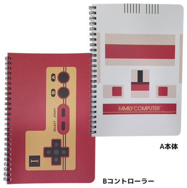 ファミコン本体とほぼ同じになるよう、特注サイズで作られた リングノート(15センチ×22センチ/2種・各700円)
