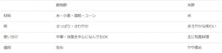 こんにちは。 先日、TVで米酢と穀物酢の使い分けについてをやっていました。 料理にお酢を使う事があまりない私にとっては、とても勉強に なりましたので、今回、御紹介したいと思います。