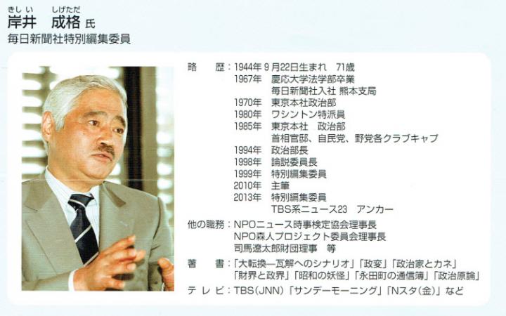 こんにちは。 昨日は、不動産協会が主催する法定研修会へ行ってきました。 1年に一度、有楽町にある東京国際フォーラムへ。 今年は、毎日新聞社特別編集委員の岸井成格さんを招いての 『激動する世界と日本の政局・日本経済の展望』について。 わかりやすい説明と聞きやすい声で、ちょっと眠気が・・・。