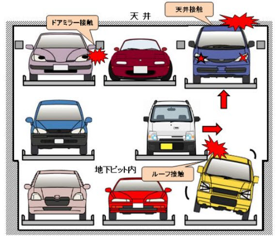 こんにちは。 先日、私の住むマンションの駐車場で事故がありました。 機械式駐車場なのですが、高さのある車を駐車した方がいて パレットを動かしたところ車のルーフ部分とパレットが接触。 緊急停車してしまいました。 おかげで私の車が出せず・・・。トホホでした。 機械式駐車場は、幅や長さ、高さに重さ。 制限が設けられているのです。 駐車場に入れようとしている車が、制限内であるかどうかを 必ず確認するようにして下さい。 特に車は入るけれど、車の上についているアンテナが長いと 折れたり曲がったりしてしまうので注意が必要です。 また、いれる時はサイドのミラーをたたんで下さい。