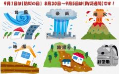 こんにちは。 8月30日~9月5日は防災週間です。 そして、昨日の9月1日は防災の日。 最近、地震だけではなく、台風や豪雨も各地で起こっています。 災害が起こった時の待ち合わせ場所や連絡方法を家族で決めて おくと良いでしょう。 また、家や仕事場所に保存水、保存食を備蓄するのも忘れずに。 まずは防災に関心をもって、出来ることから備えておきたいと 思います。