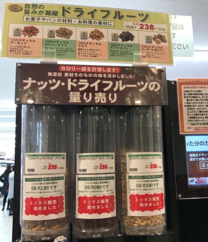 ストアの中をグルグル散策していると面白い機械を 見つけました。 ナッツとドライフルーツの量り売りをる機械です。 これを見て久しぶりにパンを作りたくなりました。 皆様もぜひ色々な食材に出会えるオーケーストアへ 行ってみて下さい。かなり楽しめますよ。