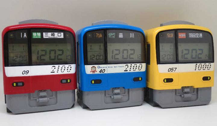 電波を受信し時刻を補正する電波時計で、2100形をモチーフにした 赤色・青色の2種類と新1000形黄色の合計3種類。 しかも、各色それぞれ違う「車掌案内」「運転士喚呼」「起動走行音」が 収録されている京急ファンには嬉しい商品のようです。