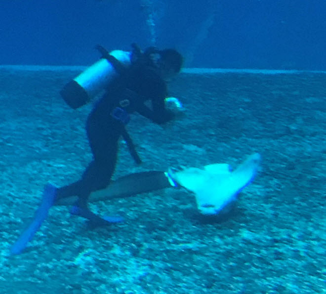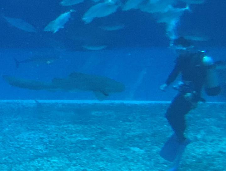 ところが、ところが水槽内では事件が?! サメが仰向けで死んでいるーーー!! どうしたんだ、おいっ!しっかりしろ! ダイバーに起こされ、尻尾をブルブルされると 奇跡的にも?何もなかったかのように? すーっと泳いでいきました。 3泊4日の沖縄旅行。楽しんでおります。 |
