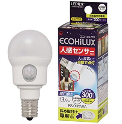 口金が上の場合は、人感センサーが照明の先端についており 口金が横の場合は、人感センサーが口金の横についている ものを選ぶようにして下さい。 人感センサーを別途つけるような工事も不要。簡単です。