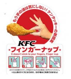 そんな中、ケンタッキーに革命が起きました! ありそうでなかった画期的なアイテム『指サック』 あっ、失礼しました。『フィンガーナップ』です。 1枚で2本指に入れられるタイプのようです。 2枚使えば、しっかり4本指でチキンが持てますよ。 12月15日からカウンター横に設置されているそうで サイズもS・Mなどあるようです。