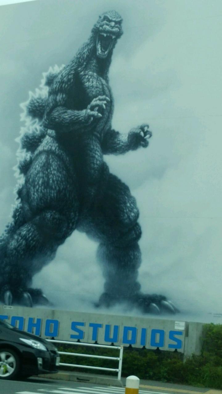 同日午後に成城を走行中、壁にゴジラ発見! 思わず写真をパシャリ。 その夜、みなさんのツイッターを見てビックリしました。 両日の撮影は、ゴジラでした。