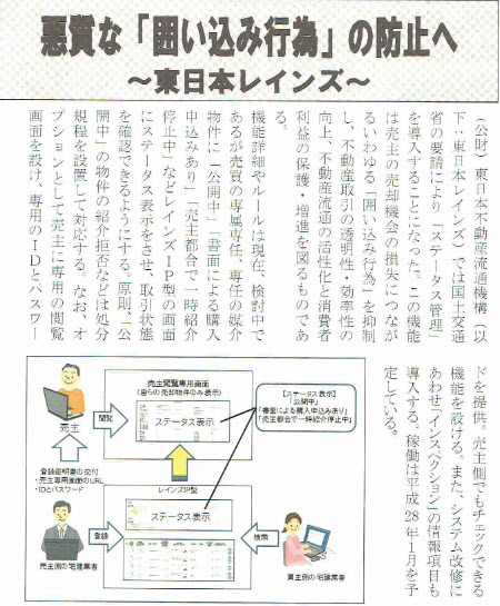 こんにちは。 昨日は、不動産協会の研修会がありました。 そこで、不動産流通システム(レインズ)が以前から問題になっていた 囲い込み行為について、新たな防止策を来年より開始するようです。
