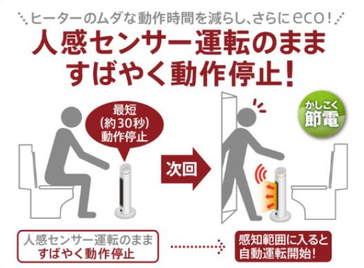 すると・・・見つけました! ZEPEAL ゼピール 人感センサー付きスリムセラミックヒーター (LEDランプ搭載/流水音付き) これなら、温風も出て、流水音も流れる!・・・早速注文しました。 我が社のトイレは、タンクに中々水が溜まらないので、続けて 2回水を流す事が出来ないので、とても重宝すると思います。 どうぞ、御来訪の際はトイレを御使用下さいませ。
