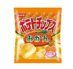 みかんの甘みと酸味が、香ばしいポテトチップスに不思議にマッチしたほんのり甘く、さっぱりとした、新しいおいしさのポテトチップスです。