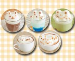 いつものコーヒーにポンとのせるだけのタイプ。 デコラッテ。温かい飲み物に置くだけでOK。 ゼラチン質で無味シートにカカオ色素で柄が プリントされているものです。 かき混ぜれば溶けるので、暖かい飲み物であれば ココアなども良いでしょうね。