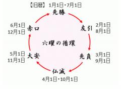 上記が六曜の読み方と順番です。 旧暦の毎月1日の六曜が決まっているので 月末から月始にかけて順番が飛ぶこともあります。