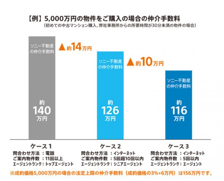 5000万円の物件の手数料 ソニー不動産では安くて約116万円、弊社は約84万円