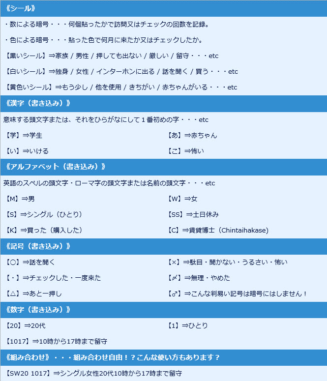こんにちは。 昨日、テレビで空き巣について放送していました。 玄関の表札や給湯機、集合ポストに怪しい記号 いわゆるマーキングをする場合があるそうです。