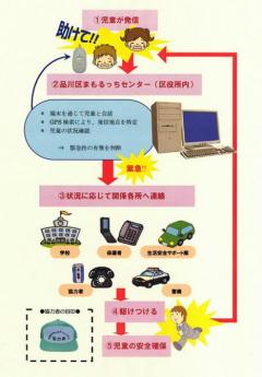 こんにちは。 今朝、テレビで 放送していたのですが、品川区では子どもたちが 犯罪被害を受けないようにするため「地域の安全は地域で作り上げる」を モットーに、区内小学生を対象に「まもるっち」(GPS機能付緊急通報装置)を 配布し、緊急通報時には生活安全サポート隊や近くの協力者が子どもの 安全を見守る取り組みを行っているそうです。