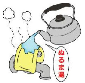 また、蛇口が凍ってしまったら、タオルをかぶせ、その上からぬるま湯を