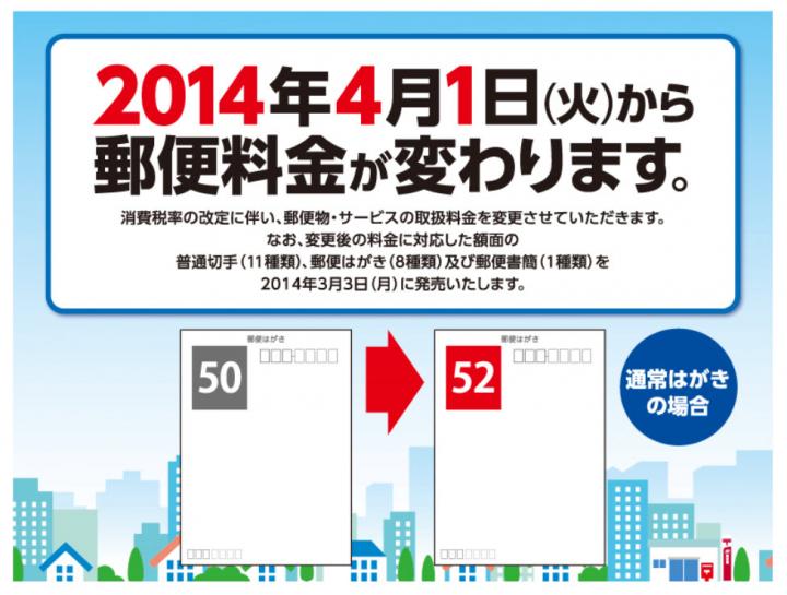 また、切手は50円から52円に。80円も82円に。 これは2円切手を買い足さなければなりませんね。 増税で何とも厄介になってしまいました。