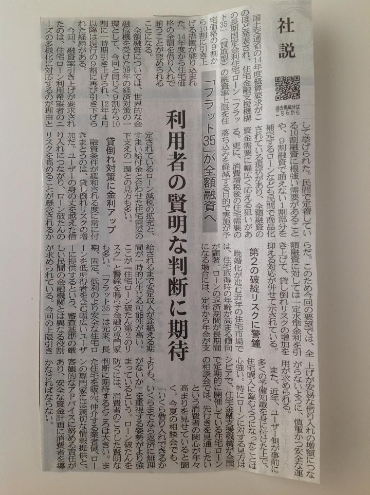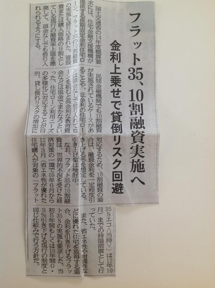 こんにちは。 来年、いよいよ消費税が上がってしまうようですね。 そこで、消費税が上がってしまう前に物件購入を・・・っと検討なさる お客様が増えているようです。 また、そのような方を引き延ばすかのように、住宅金融支援機構が 提供する長期固定金利住宅ローン(フラット35)の10割融資が 来年から始まるようです。 頭金の用意が出来る方は今年中に・・・出来ない方は来年に・・・っと いった感じでしょうか? 東京オリンピックも7年後にありますし、東京の価格も少し上がって くると思います。本当に今が買い時なのかもしれませんね。 |