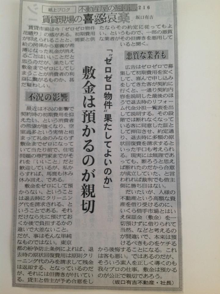 こんにちは。 いよいよ10月からお引っ越しシーズンになります。 お部屋探しの際に注意しなければいけない事っというのが 新聞に掲載されていたので、ぜひ皆様にも読んでいただきたく 今回は投稿したいと思います。 最近、賃貸物件でよく見かけるゼロゼロ物件(敷金も礼金も0) これって果たして良いことなのか?っという題材です。 退去時の原状回復は、貸主も借主も賃貸開始時には重要視して いないことが多いですからね。 ゼロゼロ物件にすると借主がすぐ決まりますよっと貸主に勧め ゼロゼロ物件だから借りやすいですよっと借主に勧め・・・。 メリットとデメリットをきちんと説明してくれる仲介会社や管理会社に 物件の募集を依頼する・物件を探して契約するっということが 大切だと思います。 |