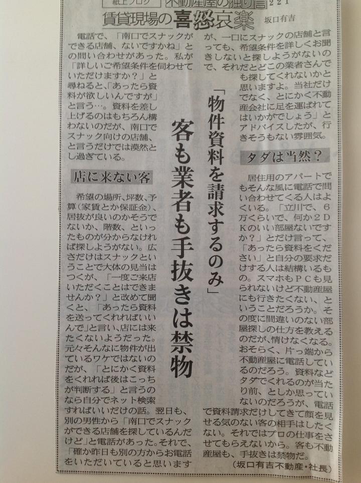 こんにちは。 今日も不動産新聞に掲載されていた気になる記事を御紹介。 近年、増加している『物件資料だけを請求するお客様』について。