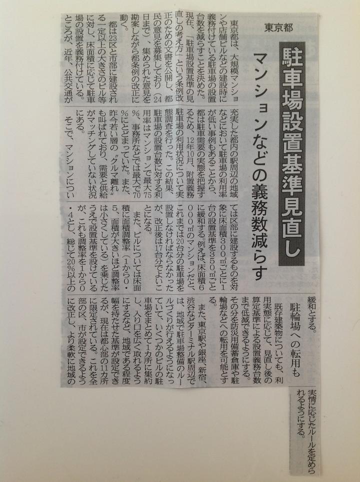 車離れがすすみますと、駐車場の敷地に建物が建ち、御案内出来る物件が増えるのは 喜ばしいことですが、車で御案内する際の駐車場探しが大変になりますし、時間貸しの 駐車場代がタバコ代並みに高くなりそうですね。 車所有者としては駐車場の設置基準は慎重におこなって下さることを切に望みます。 |