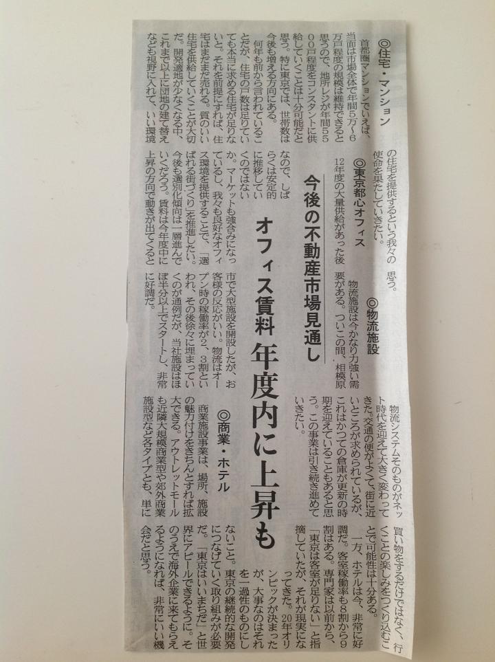 こんにちは。 本日も不動産新聞から、今後の不動産市場見通しのお話し。