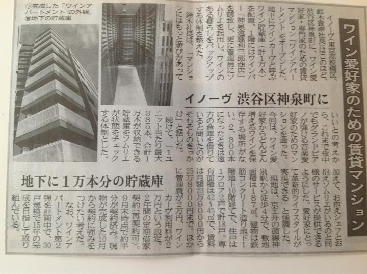 さて、本日はワイン愛好家のための賃貸マンションの御紹介です。 渋谷区神泉町にワインアパートメントがオープンしたそうです。 地下にワインの貯蔵庫(約1万本)もあり、1階にはワインバー! 管理員にソムリエと、ワインのある暮らしをバックアップしている そうですよ。 何とも面白いコンセプトですね。きっと今日は午前0時から住人の方は ワインに酔いしれている事でしょう。ワイン好きな皆様、ぜひどうぞ! |