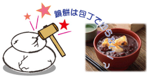 また、昔は鏡開きをすることでお正月に一区切りをつけて仕事始めとしていました。 鏡開きの際に、「鏡餅を包丁で切ってはいけない」と耳にした事があるのですが 元々武家から始まった行事だからと言われています。 包丁などを使うことで切腹などを連想させてしまい、縁起が良くないということから 包丁を使わないで手や木槌で割るという習慣になったそうです。 近年では真空パックの鏡餅や中に小分けした餅が入っており、とても便利になりました。