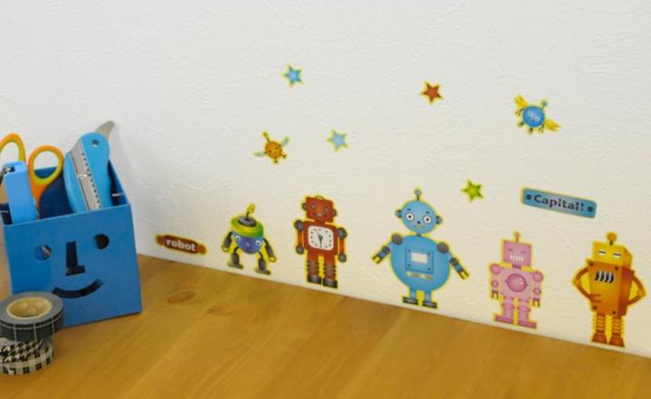 ネットで検索してみたところ、今は黒や白といった単色だけではなく 色々な色があるようです。 また、針だけ壁に取り付けて、文字盤をシールに・・・。 これで子供部屋をポップで可愛らしくすることも出来ますね。 ペット不可なお部屋でも猫やイルカのシールで癒やされますよ。