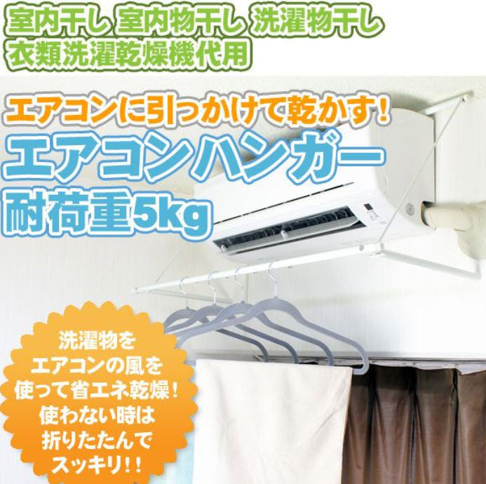 エアコンの直風で洗濯物を乾かせます。 また、冬には加湿にもなります。 耐荷重5キロとなっていますが、結構な量が干せます。 花粉の飛ぶ季節、雨の日、梅雨時期、冬場と常に大活躍 しています。