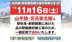工事は、11月15日終電から11月17日初電にかけて行なわれ、11月16日は 山手線大崎~東京~上野間が初電から16時頃まで運休するそうです。 また、京浜東北線品川~田町間が終日運休だそうです。